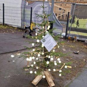 Samaan kortteliin sijoittuvassa Vuorilinnan päiväkodissa valmistauduttiin viime viikolla talven pimeisiin päiviin heijastinpuulla. Rakennustyö Salmisen työmaan väki toi päiväkodin lasten iloksi puun, josta jokainen sai valita itselleen heijastimen.