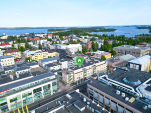 Yhtiön sijainti Kuopion keskustan ytimessä, ”Mualiman navalta” katsottuna etelässä heti Kauppakeskus Aapelin takana, on keskusta-asumisesta haaveilevalle paras paikka asua. Yhtiön osakkeet omistaa pääosin Rakennustyö Salminen Oy, joka myy yhtiön asuntoja nyt taloyhtiön historian aikana ensimmäistä kertaa myyntikohteena. Kuluttajat ovat jo löytäneet tämän kohteen ja kotien myynti on jo käynnissä. Autolle on ostettavissa autohallipaikka yhtiön pysäköintikerroksista: vh. 15.000 € / alempi pysäköintitaso, vh. 18.000 € / ylempi pysäköintitaso.