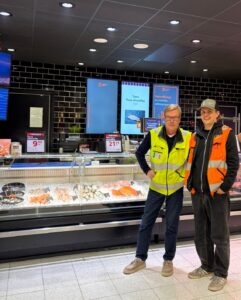Kuvassa ovat Harri ja Samuli marraskuussa valmistuvan K-Supermarket Vattuniemen myymälässä, johon tehtiin myymälän uudistusremontti.