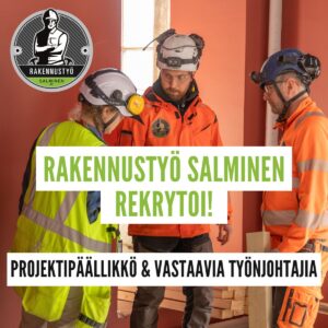 Kasvun myötä etsimme uusia osaajia pääkaupunkiseudulle rakentamaan Salmisen tarinaa. Haemme alkaviin rakennushankkeisiimme projektipäällikköä ja vastaavia työnjohtajia.