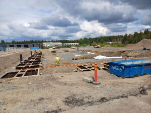 ”Perustustyöt ovat täydessä vauhdissa, ja työmaa on lähtenyt hienosti liikkeelle. Työt alkoivat kesäkuun alussa ja uusi halli valmistuu marraskuun loppuun 2025”, kertoo työnjohtaja Pasi Kokkonen.